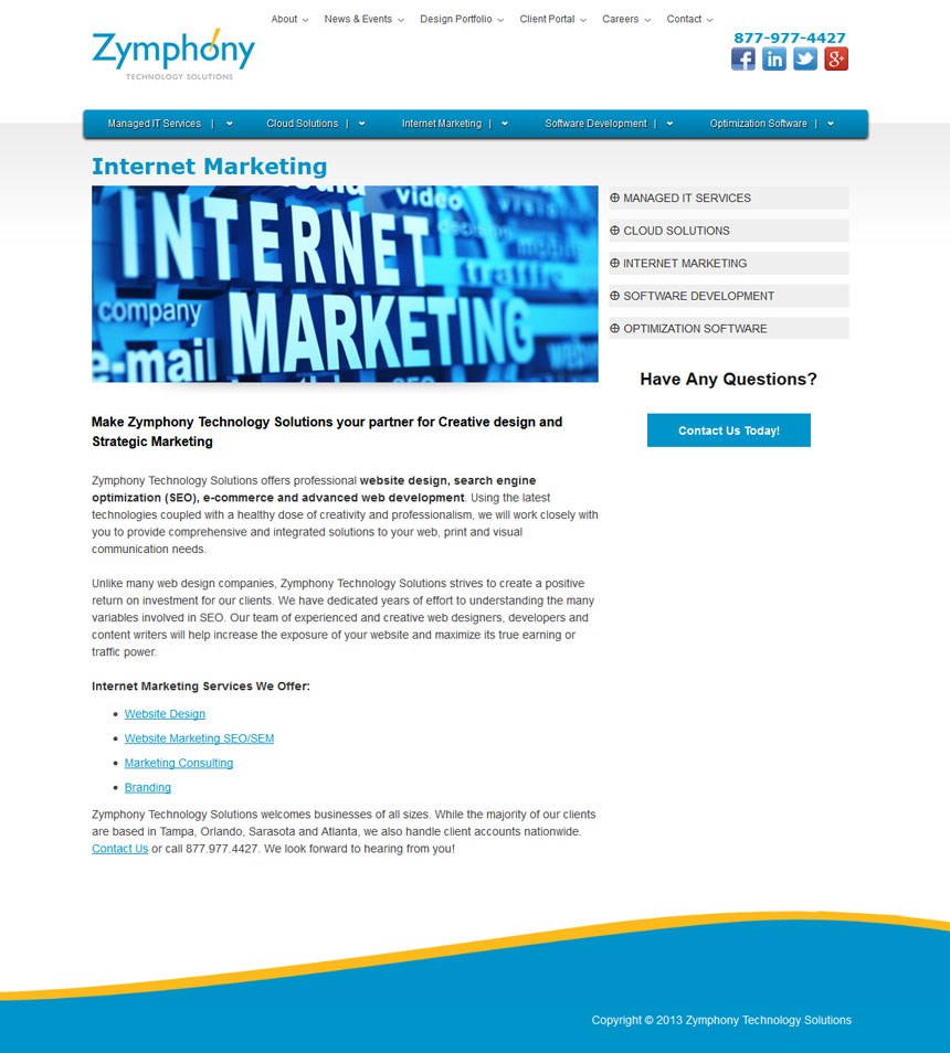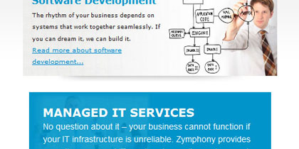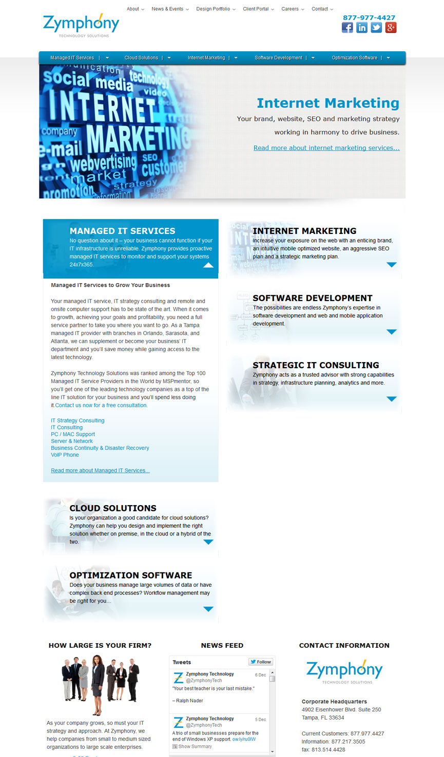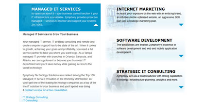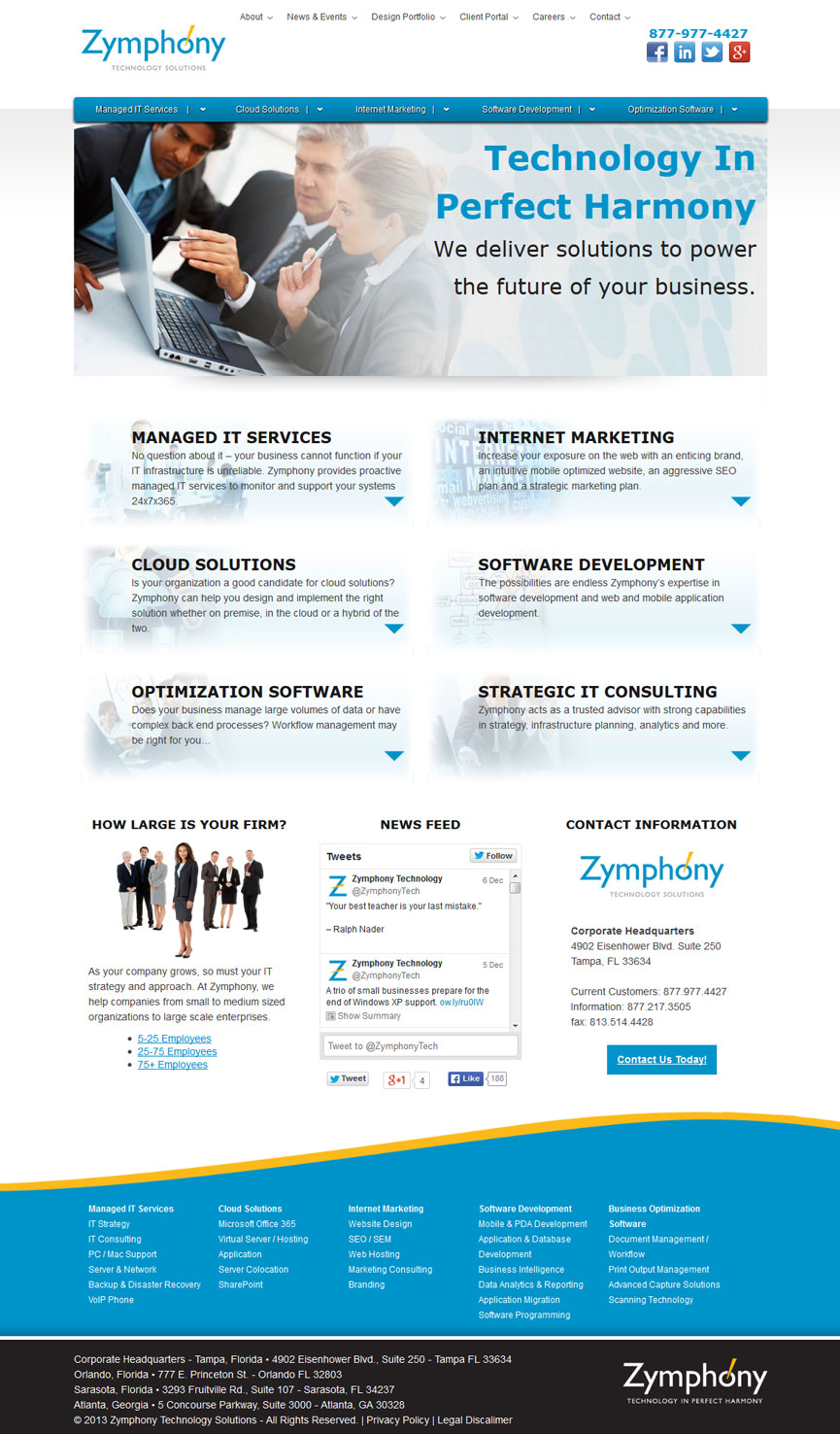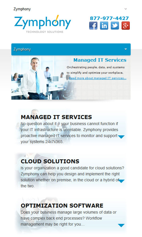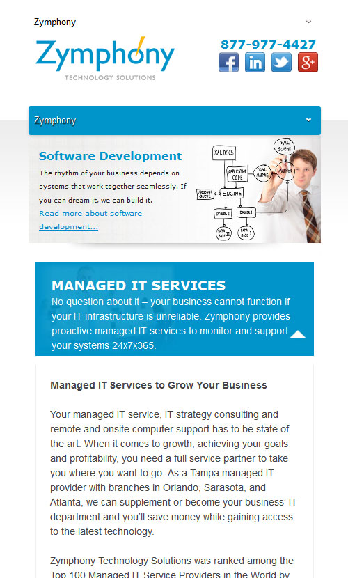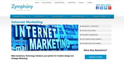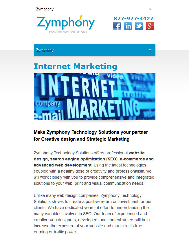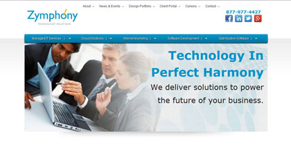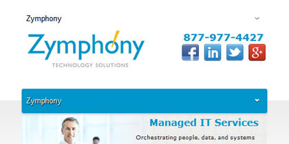 Zymphony Technology Solutions' website is built in PHP and is mobile-responsive.